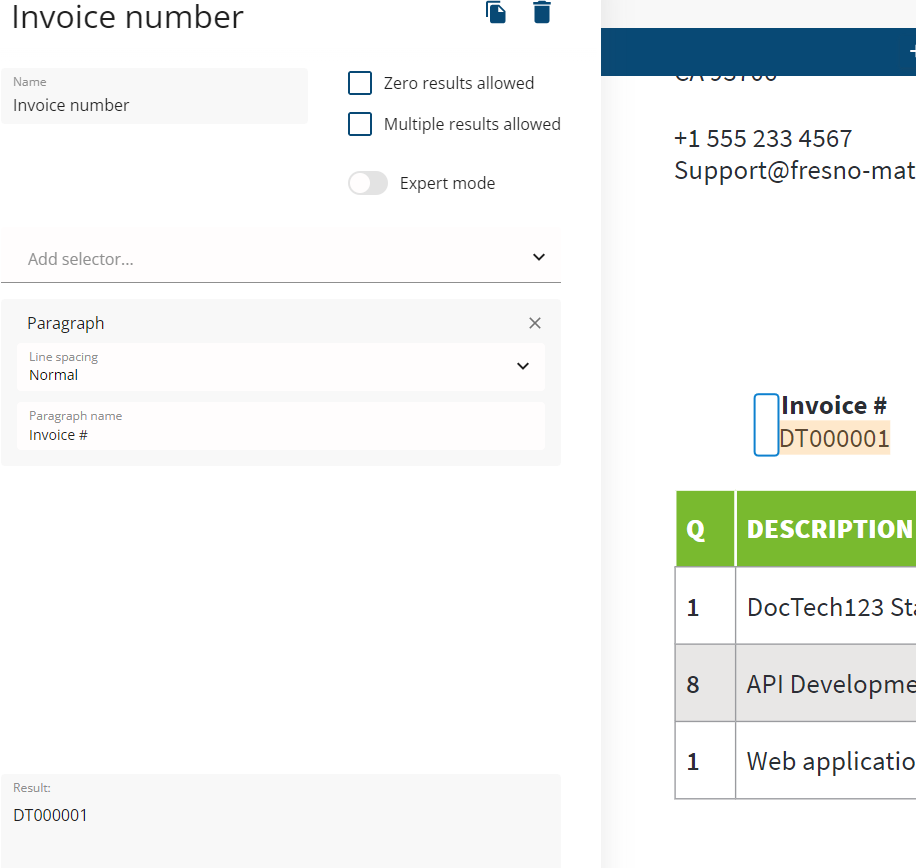 It is true (at least in this case) that the same approach as we used for Invoice number would also work for the date fields in this invoice. You would just need to change the Paragraph name to "Invoice date" and "Due date" respectively.