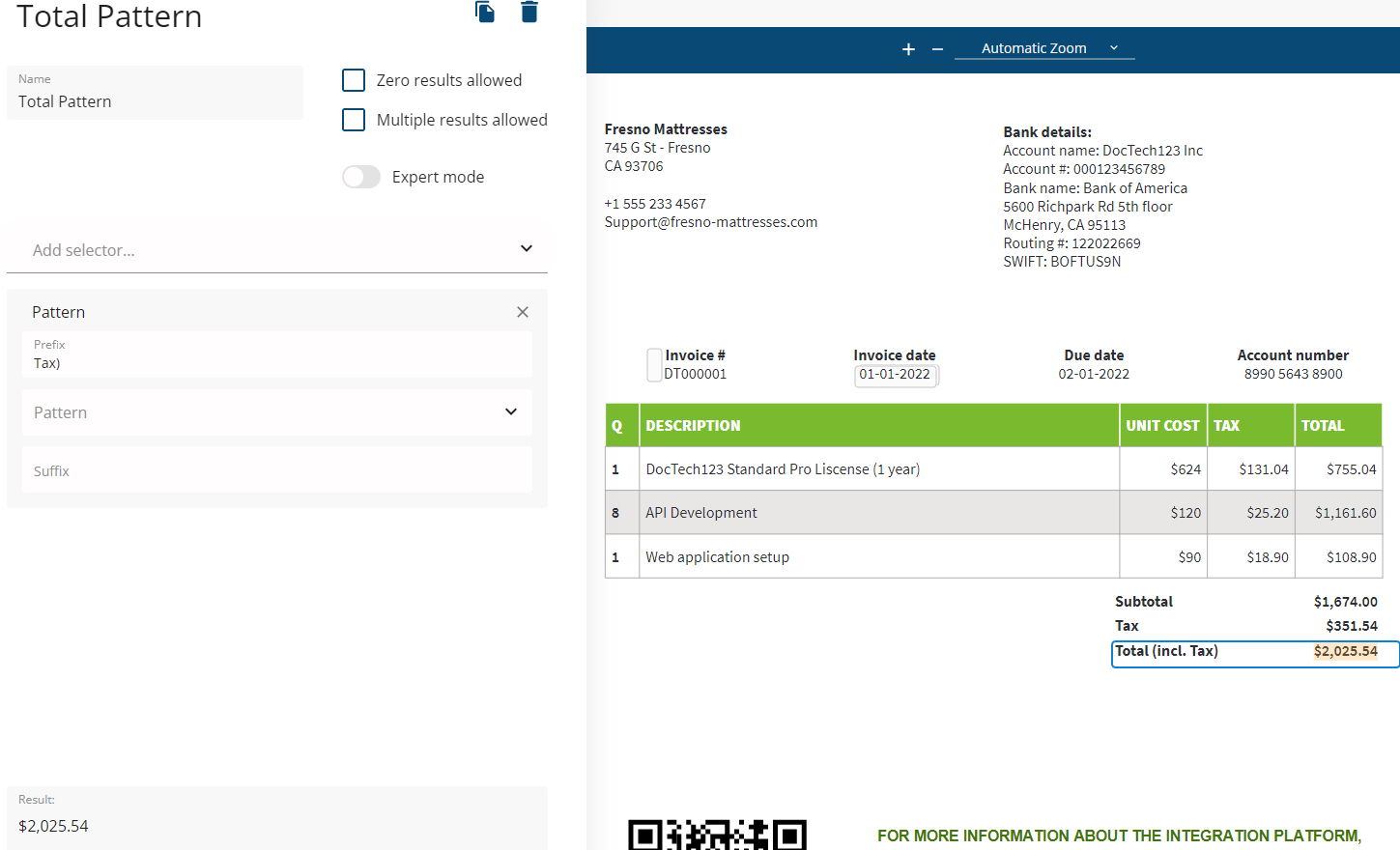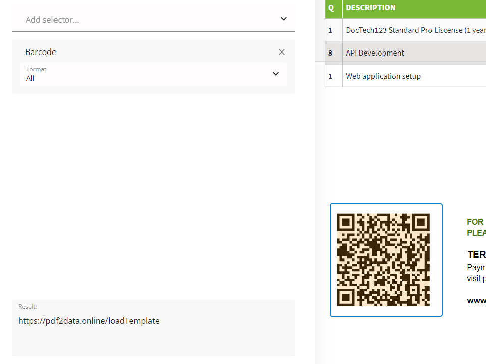 The position of barcodes is usually fixed relative to a page's boundaries. The barcode selector analyzes the BBox content and extracts value from barcodes or QR codes if there are any.