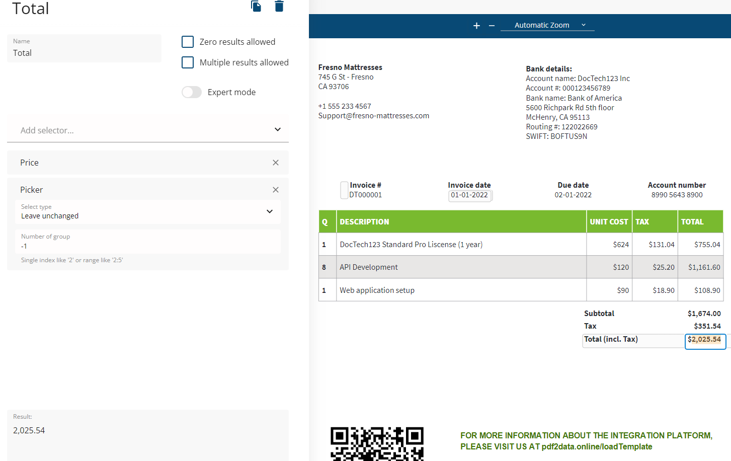 E.g. our sample invoice contains a link to the pdf2data.online website.