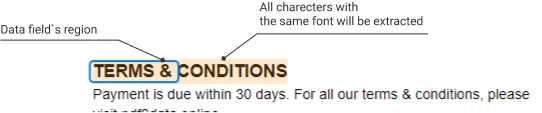 The font selector identifies the font using the text within the data field's region and extracts all characters with the same font from the PDF document.