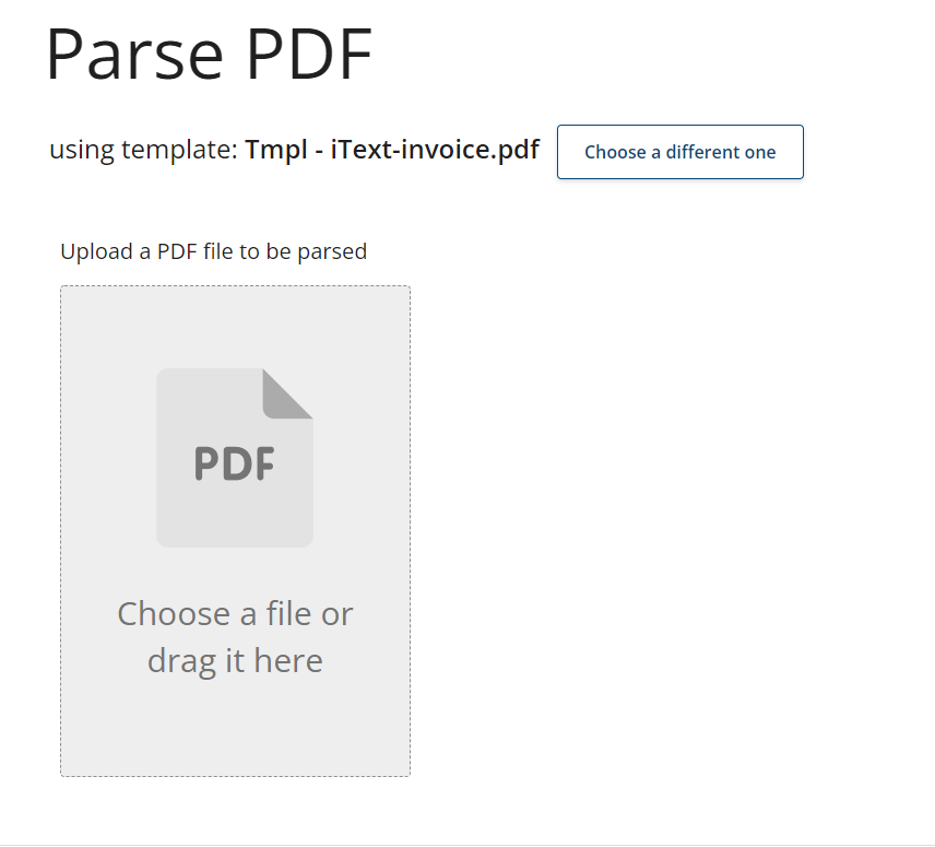 You need to download the PDF template and store it somewhere where it can be available for your application. However, to make sure that your template is flexible enough, it is good to manually test it on a few samples beforehand. This can be done by clicking the "Select PDF to parse" button.