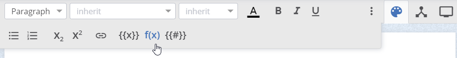 Calculations can be inserted into rich text elements. To insert a calculation, click the f(x) icon in the command bar. Bear in mind that it can be hidden under the ellipsis (three vertical dots) icon.