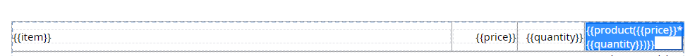 | product() | calculates the product of the arguments | product({{field1}}*{{field2}}) or product({{field1}}/{{field2}}) |