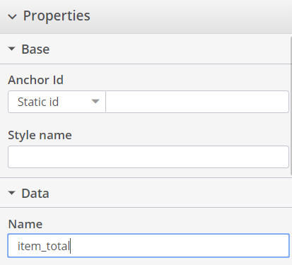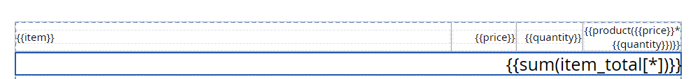 You can now use this name in other calculations, for instance to calculate the grand total. Note that you don't use double curly braces to refer to this named field. the double curly braces are only used to refer to elements in the data sample.