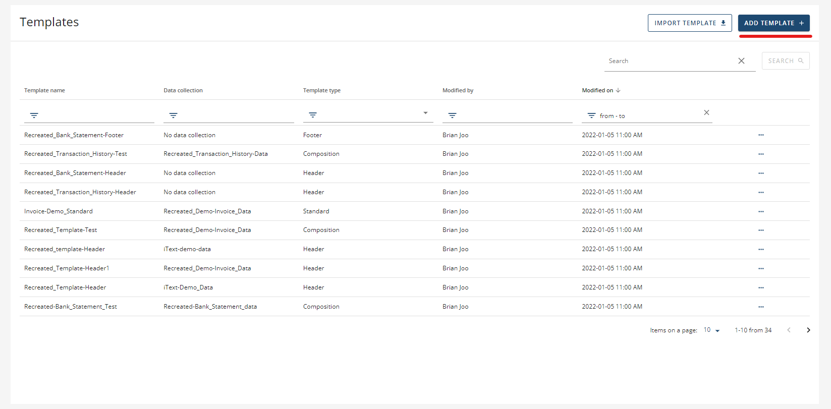 iText DITO offers four different types of templates users can choose from, a header, standard, footer & a composition template.