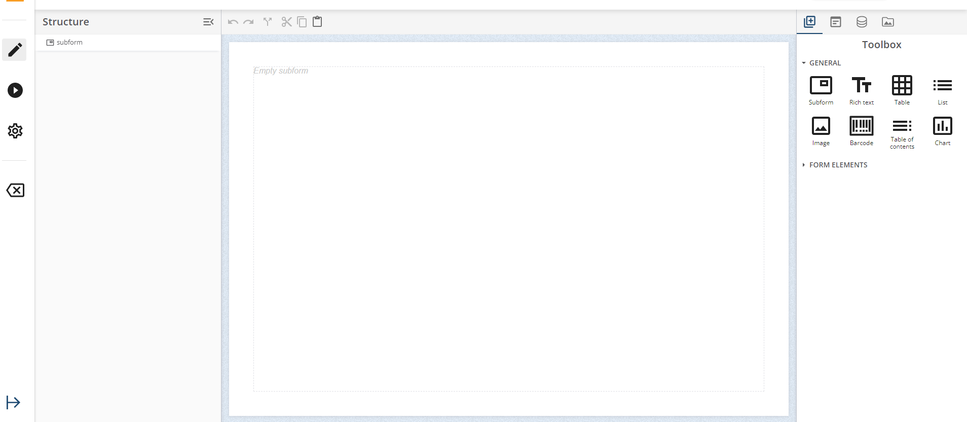If you select a header, standard or body template, it will direct you to the Editor component of iText DITO where you can actually create & build out your templates.