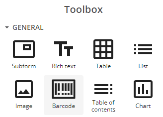 Position the cursor where you want to insert the barcode in the template's editing canvas. Then click the barcode control in the toolbox.