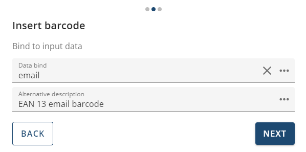 A three-step wizard pops up that will let you configure the barcode.