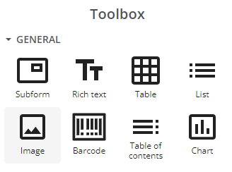 You can also dynamically insert images from the data sample related to the template package. You can bind the image element to a field in the data sample that holds either a link to an image file (URL) or an binary encoded version of the image.