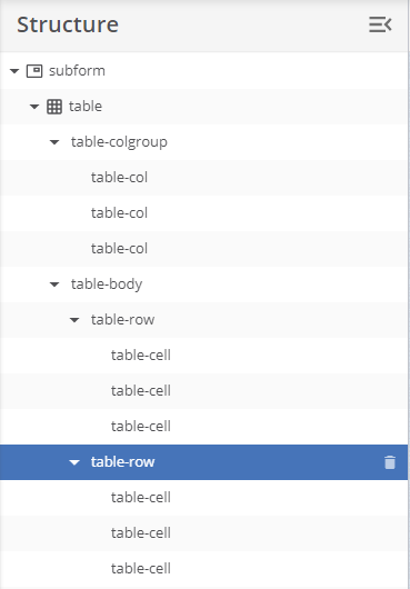 First, select the element in the canvas that you wish to repeat. Typically, this is a table row or a subform.
