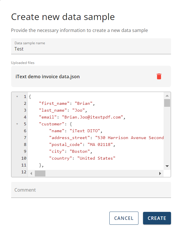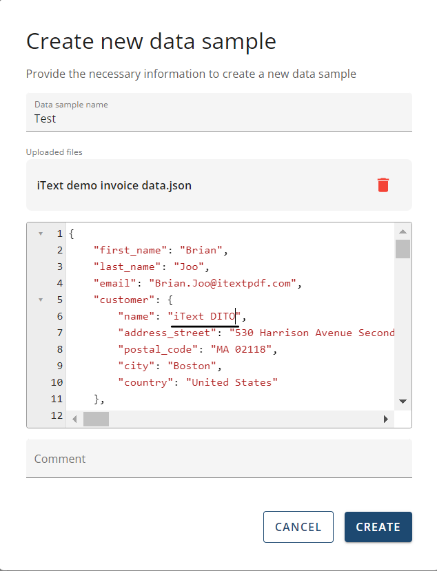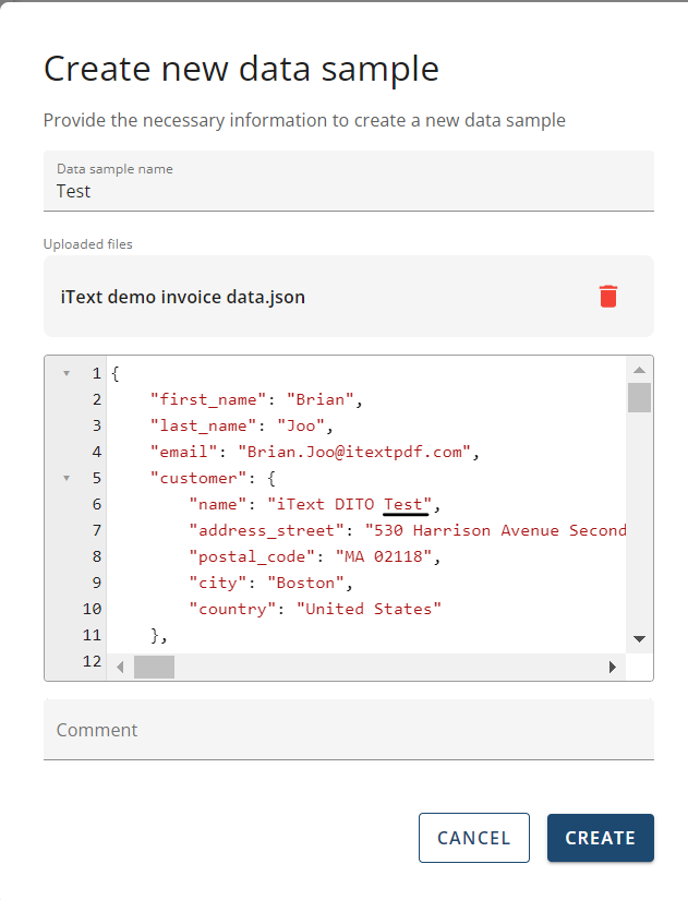 This is a guide on creating & editing your JSON data samples through the Manager component of iText DITO.
