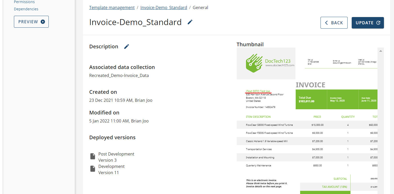 For this guide we will be making a small edit by changing the name of the company to 'iText DITO Test'.