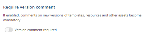 Enabling the "Require version comment" function will make it a requirement for users to comment on the changes that are made in their templates, resources, and data collections. This helps keep track of each version in case there's a need to roll back to a previous version.