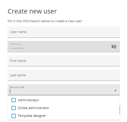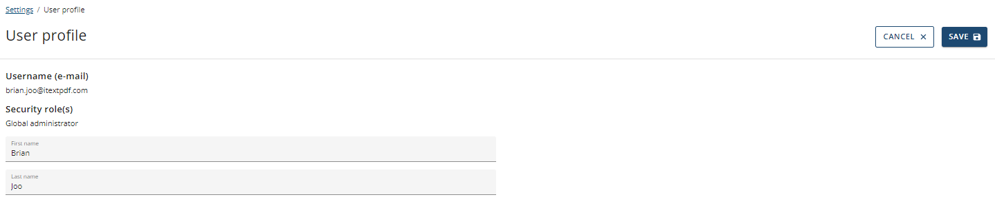 Information about the selected User can be seen on this page, including the username (email), security role and the name of the user.