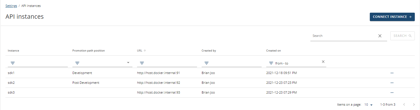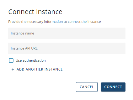 When you connect an instance you will need to provide a name and the instance API URL. You can also connect multiple instances at once.