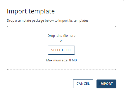When you select 'Import Template' a window will pop up allowing you to import a .dito file (legacy template project) to your workspace.