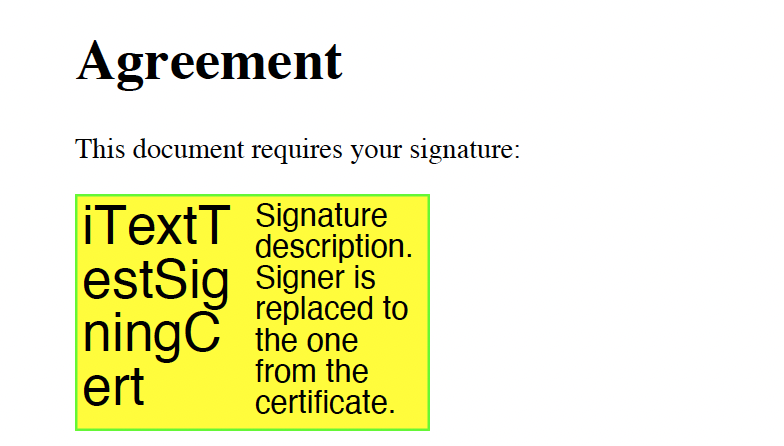 This intermediate form field will then be signed with the PdfPadesSigner() (Java/.NET) and create a custom signature appearance.