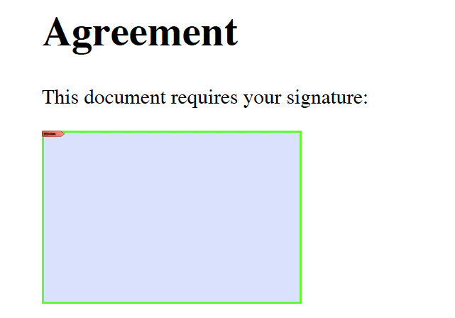 This example uses a custom HTML tag <signature-field> to define the place for the signature in the HTML template.