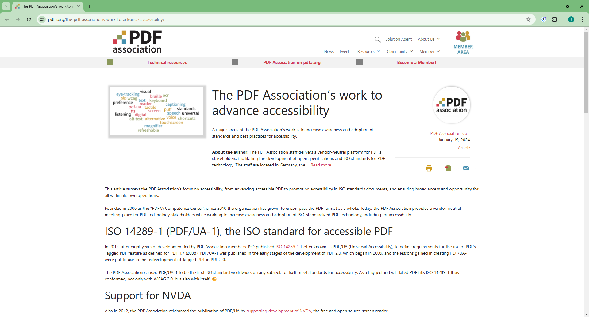We’ll first need some suitable HTML to use as a template, so what could be more appropriate than the PDF Association’s own article on their efforts in advancing accessibility?
