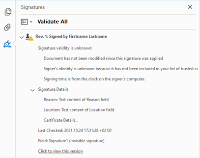 To re-use the appearance of an existing field you of course also have to set the signature field name to the name of that existing field, see the Excursion: Signature Field Names above.