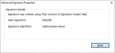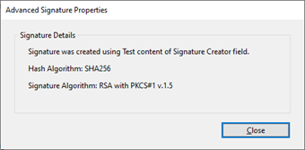 The value of the signature appearance SignatureCreator property is stored in the Name entry of the App dictionary in the Prop_Build dictionary in the signature field value. This entry is specified as The name of the software module used to create the signature.