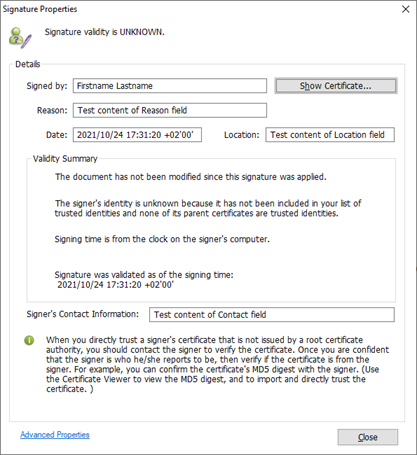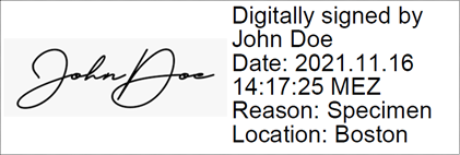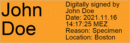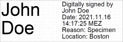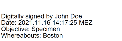 "Digitally signed by " plus the signer’s name by default derived from the signer certificate.