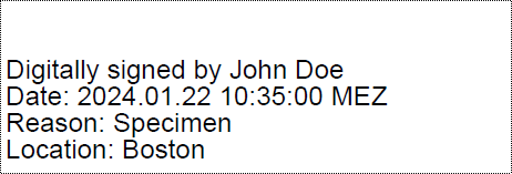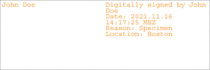 iText offers a few built-in layouts that organize certain bits of information in the signature appearance rectangle. These bits of information can be set using immediate and nested properties of the PdfSigner. They are: