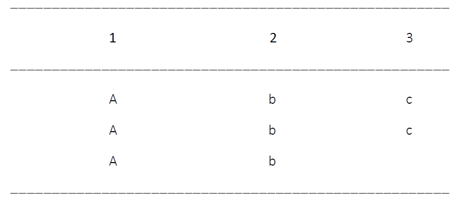 The screenshot below shows a table drawn using horizontal ASCII lines: