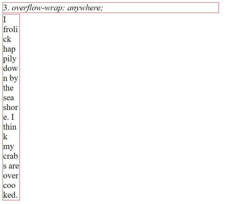 The overflow-wrap: anywhere; setting allows for line breaks within overflowing words if there are no otherwise acceptable breaking points within a line.