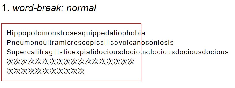The word-break: normal; property preserves standard line break rules.
